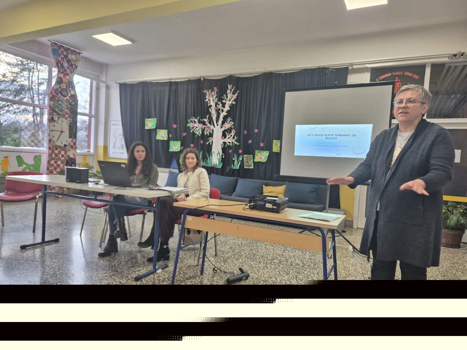 Predavanje su održale školska liječnica Gabrijela Krajačić Jagarčec, školska psihologinja Lea Margetić i logopedinja iz Dječjeg vrtića Budinščina Dora Međeral, koje su roditeljima približile što sve podrazumijeva spremnost za školu. Kroz izlaganja je istaknuta važnost tjelesne, psihološke i jezično-govorne razvijenosti djeteta, kao i konkretni načini na koje roditelji mogu pružiti podršku i olakšati djetetu prilagodbu na nove školske izazove. Ujedno je predstavljen i koristan alat putem kojeg djeca mogu vježbati predvještine čitanja i pisanja, uz naglasak na važnost odabira kvalitetnih i edukativnih sadržaja.