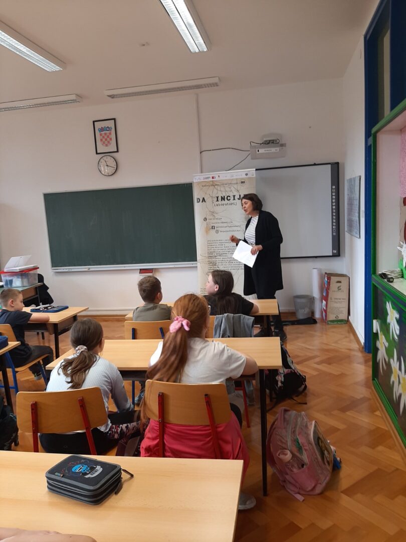 Učenici su na zanimljiv i njima razumljiv način naučili što se smatra Da Vincijevim kodom i okušali se u zrcalnom pisanju svojeg imena, a isprobali su i model da Vincijevog katapulta.