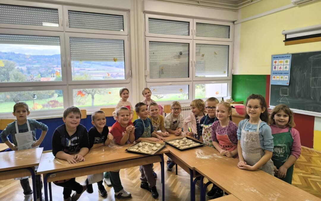 1.b je prihvatio izazov Probaj nešto novo te spojio s Danom kruha. Izradili smo peciva sa suncokretovim i chia sjemenkama te maslinovim uljem. Usput smo probali suncokretove sjemenke, a kad je pečeno pecivo zamirisalo, probali smo ga u kombinaciji s maslinovim uljem i namazom od avokada. Reakcije su bile razne, no najvažnije je da smo bili hrabri probati nešto novo.