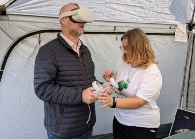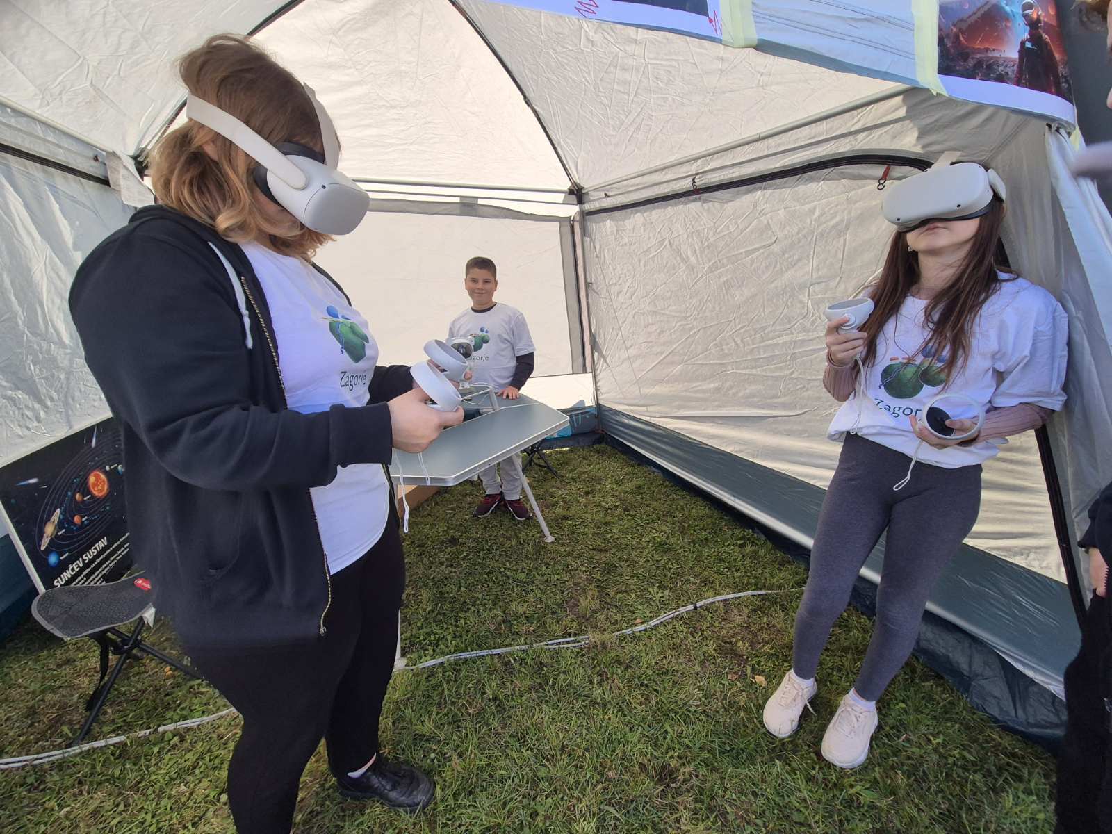 Prva i najzanimljivija je Virtualna stvarnost kroz VR naočale nabavljene za potrebe projekta Astro kamp u Hrašćini. Učenici su s pomoću VR tehnologije imali priliku „prošetati“ Međunarodnom svemirskom postajom, pogledati Zemlju i Hrvatsku iz svemira te doživjeti jedinstvena iskustva poput letenja iznad vulkana ili plivanja s morskim psima. Ova aktivnost pobudila je veliko zanimanje kod mladih posjetitelja, koji su uživali u putovanju kroz virtualni svemir.