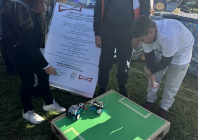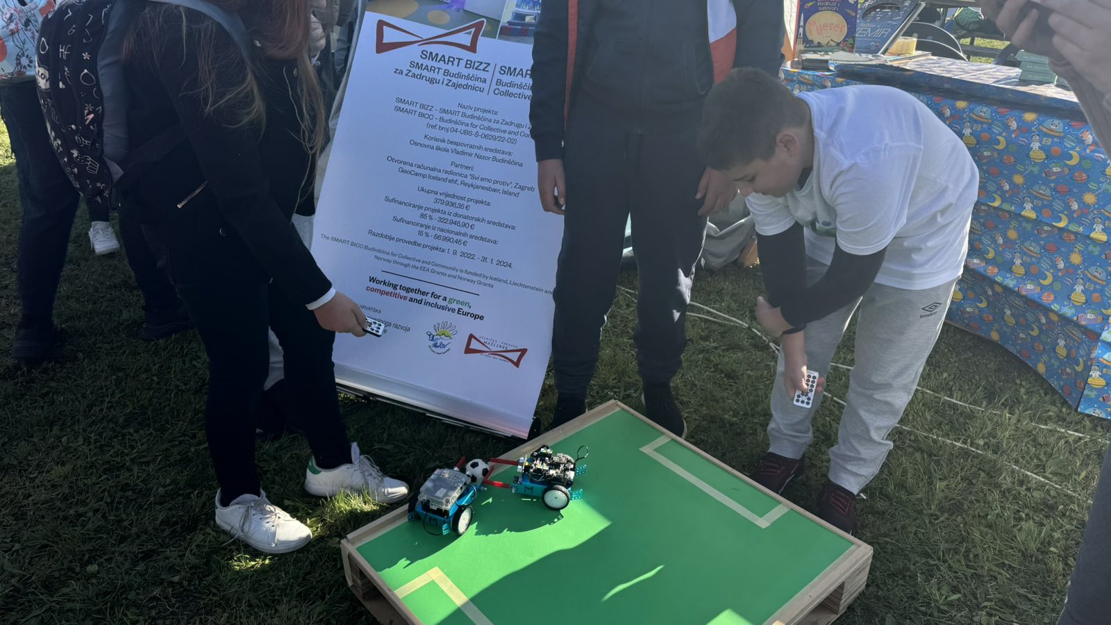Druga aktivnost imala je naglasak na spoju STEM-a i natjecateljskog duha kroz igranje nogometa sa MBot robotima. Dakle učenici i posjetitelji su mogli odigrati robotsku nogometnu utakmicu. Učenici su isprogramirali prethodno robote kako bi prihvaćali naredbe upravljača, a učenicima i posjetiteljima su prezentirali naredbe i predali im u nogometne STEM ruke daljinske upravljače robota. Ova je aktivnost spojila zabavu, natjecateljski duh i osnove robotike na pristupačan i zanimljiv način.